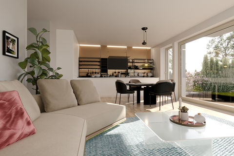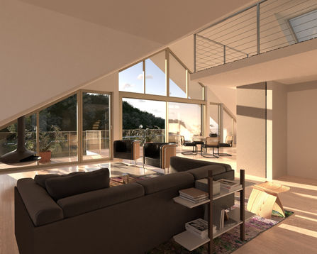 Jede Wohnung besticht durch Panorama Fenster, die den Blick in die Ferne schweifen lassen - über den See und in den großen Garten mit alten Baumbestand. Die Terrassen, Balkone bzw. Dachterrassen sind Süd-West orientiert.