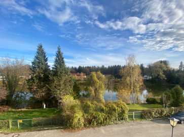 Wer sich Natur ohne Garten, aber mit unverbautem Naturblick und Seeblick wünscht, dessen Wahl sollte auf die Wohnungen im 1. OG fallen. Das Penthouse mit Fernblick in die angrenzenden Wälder einerseits und mit einem schönen Seeblick andererseits besticht durch eindrucksvolle Räume und eine Ausstattung, die keine Wünsche offen lässt.